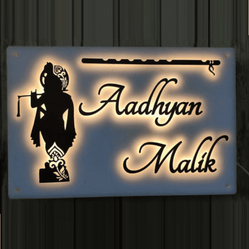 Introducing the Krishna Light Name Plate for Home Outdoor, a stunning addition to your home decor. Crafted with intricate detailing, this name plate showcases the divine figure of Lord Krishna, radiating a sense of spirituality and elegance. Made from high-quality materials, it is designed to withstand outdoor conditions, making it perfect for adorning the entrance of your home. Illuminate your surroundings with the gentle glow of the built-in LED lights, creating a serene ambiance. Enhance the beauty of your home with this exquisite Krishna Light Name Plate.