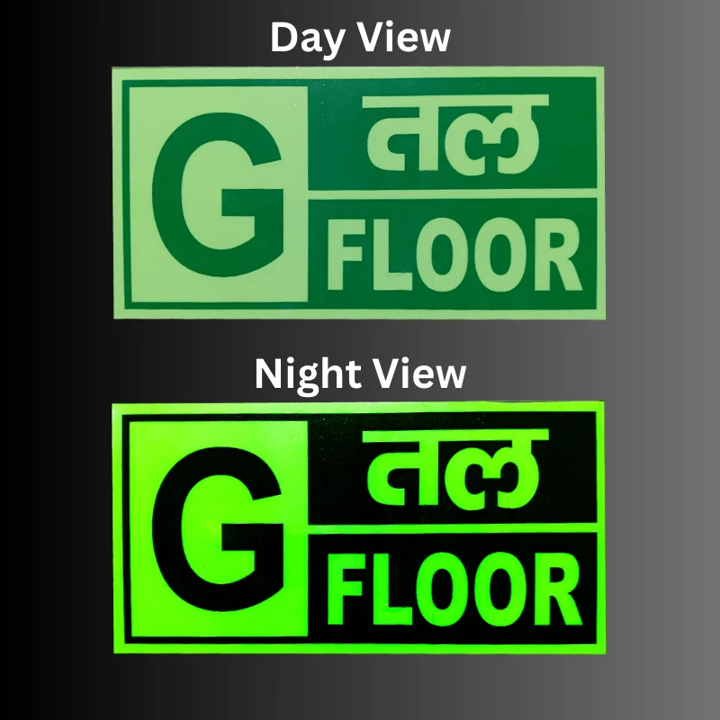 The night glow floor signage is used in areas where we need to specify the floor. In such cases, like we want to go to the ground floor there will be a mention of G floor which means the ground floor similarly for 1 floor there will be 1 floor, and so on. We have all floor night glow signage from the basement to the top floor. They are B, G,1,2,3,4,5,6,7,8,9……etc.The night glow signage is designed in such a way that you will get visibility both day and night. At night they will glow and produce light and in the day they absorb light and increase visibility.